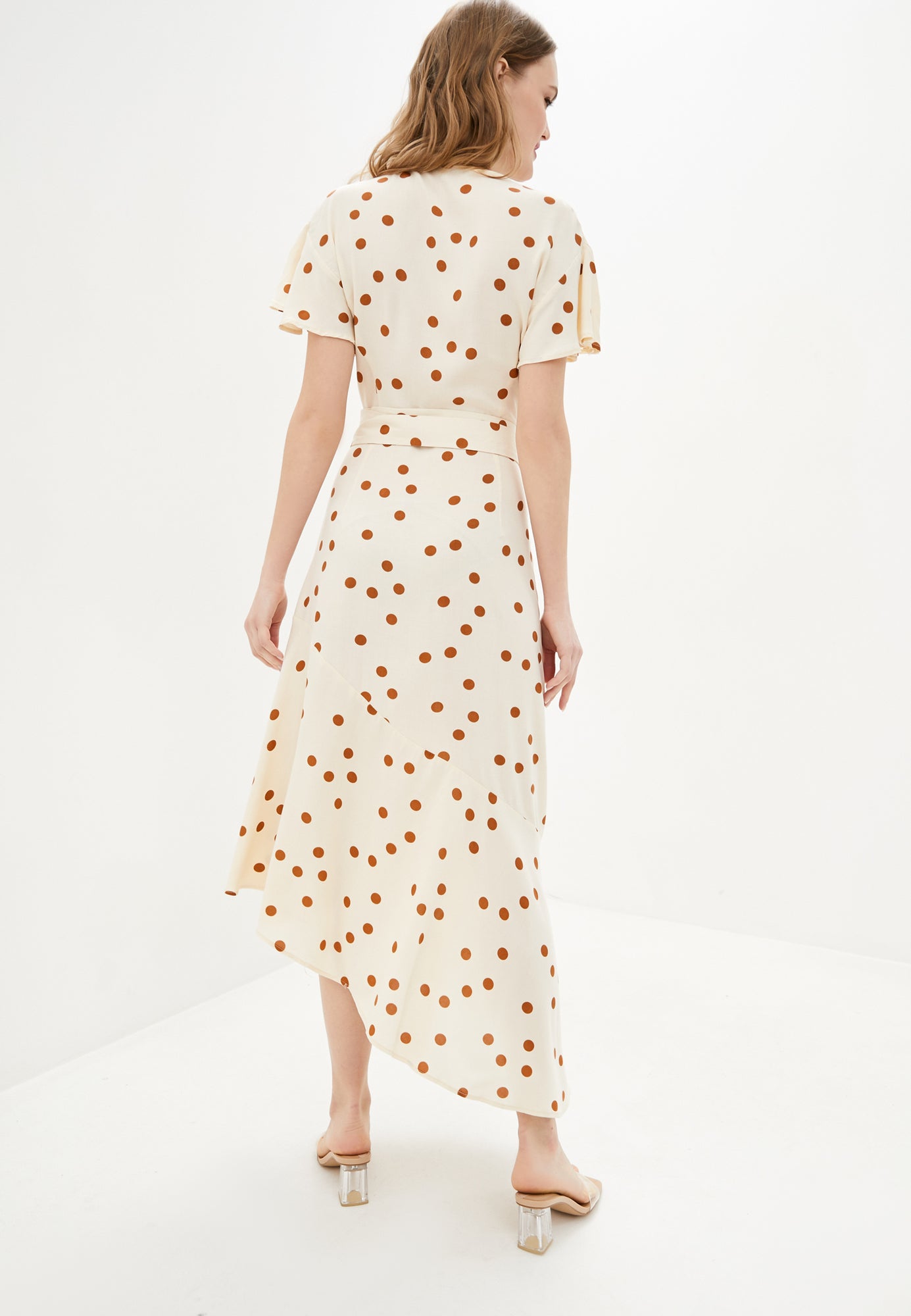 Symmetrical summer dress in a romantic style - with beautifully draped hem and sleeves. The cut is fragrant, tied with a belt on the back. Lightweight fabric and V-neck. Inner seam with contrasting thin ribbon.