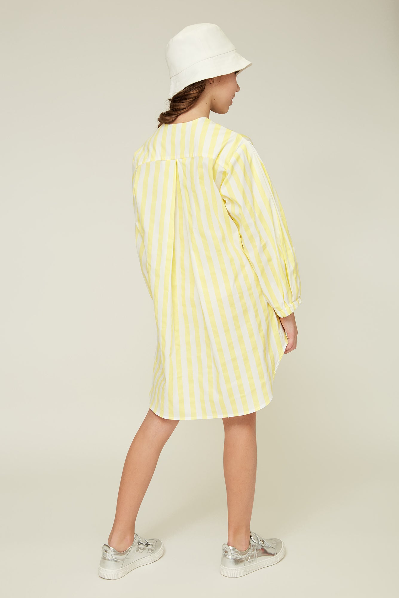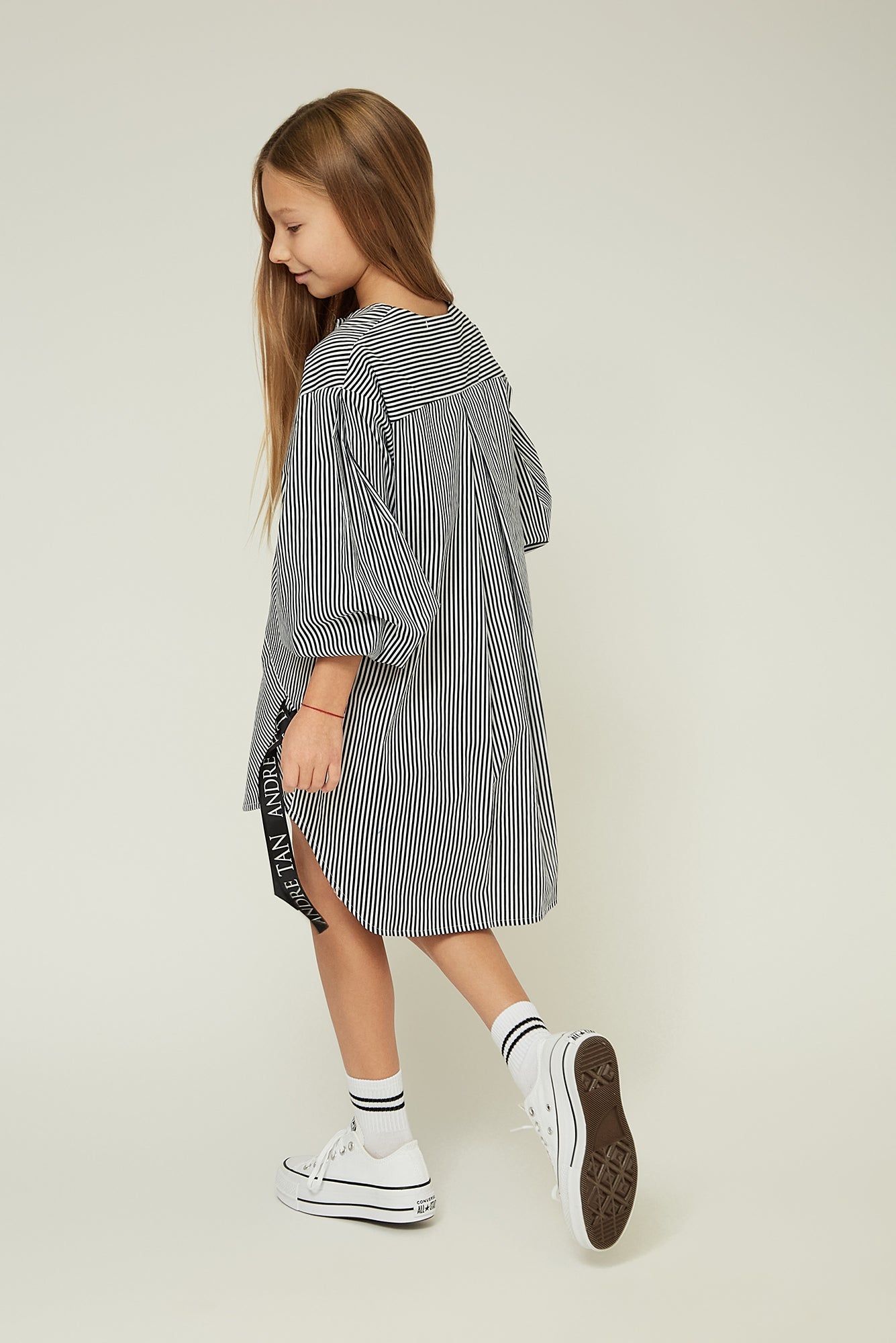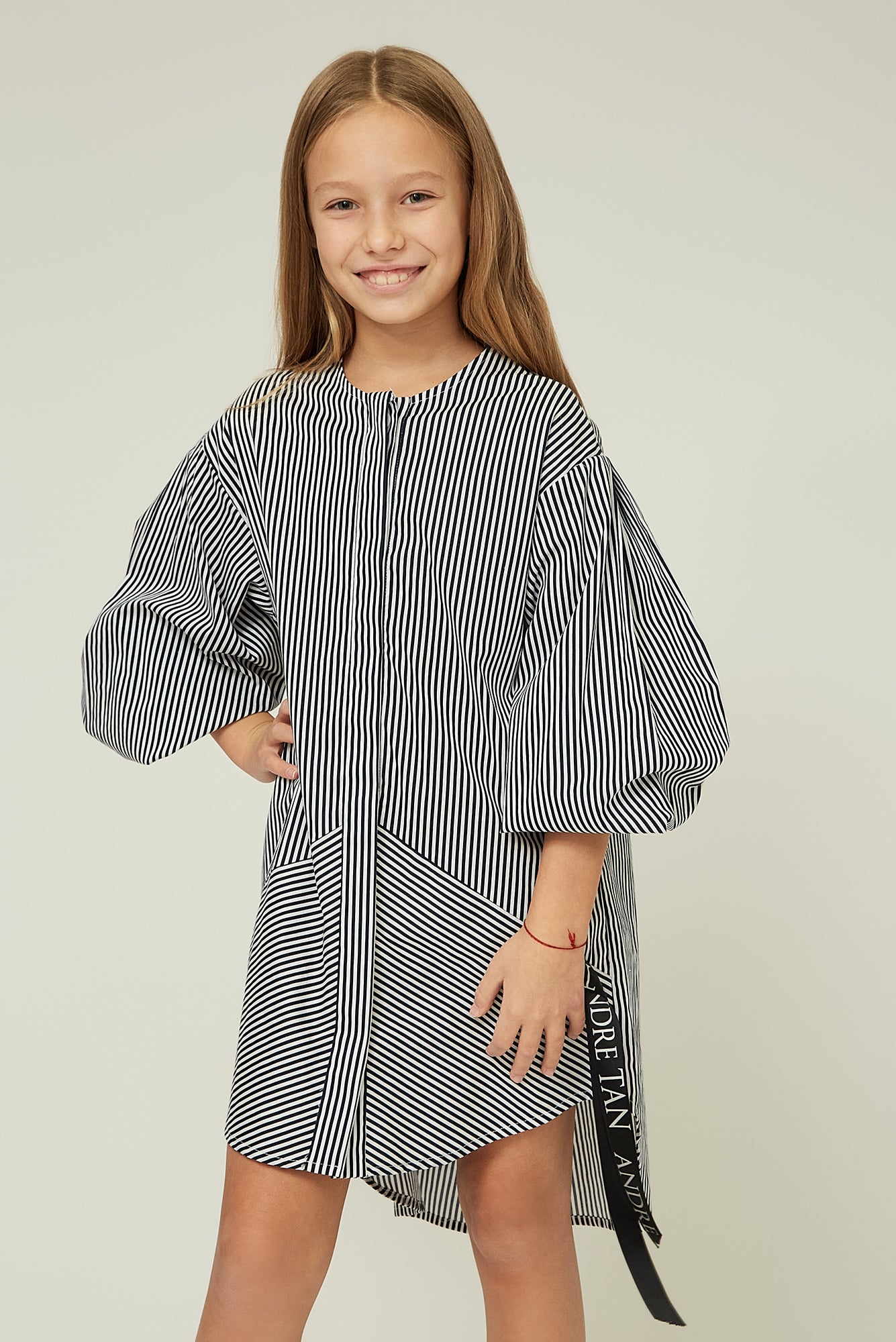 This dress-shirt is a practical and elegant wardrobe essential, holding a distinguished place in every fashion season. Designed to impress, it features a cascading silhouette combined with long sleeve ruffles, creating a charming and sophisticated look. The unique transition from vertical to horizontal stripes adds an unexpected detail that enhances its visual appeal. Crafted with attention to durability, the front rod fastening ensures a secure fit without the worry of unreliable or broken zippers. Perfect for young fashion enthusiasts seeking style and comfort, this piece blends classic elegance with contemporary design seamlessly.Share
