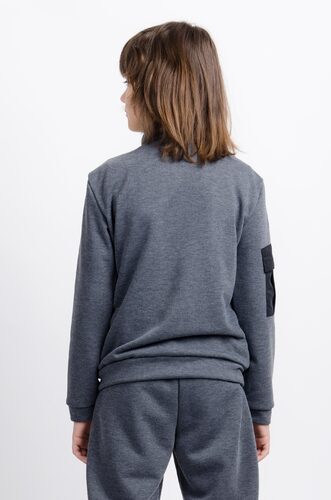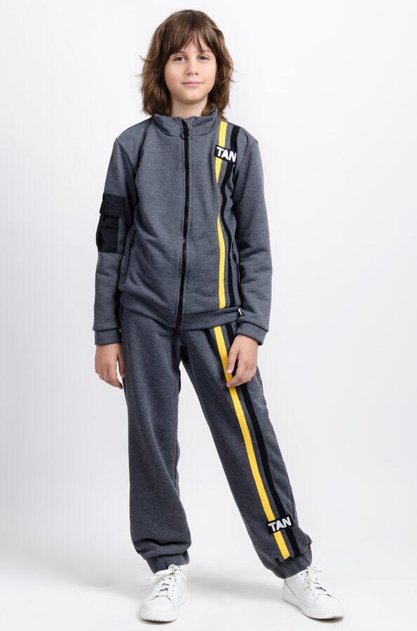 Gray jacket with a zipper for a boy with standing collar.