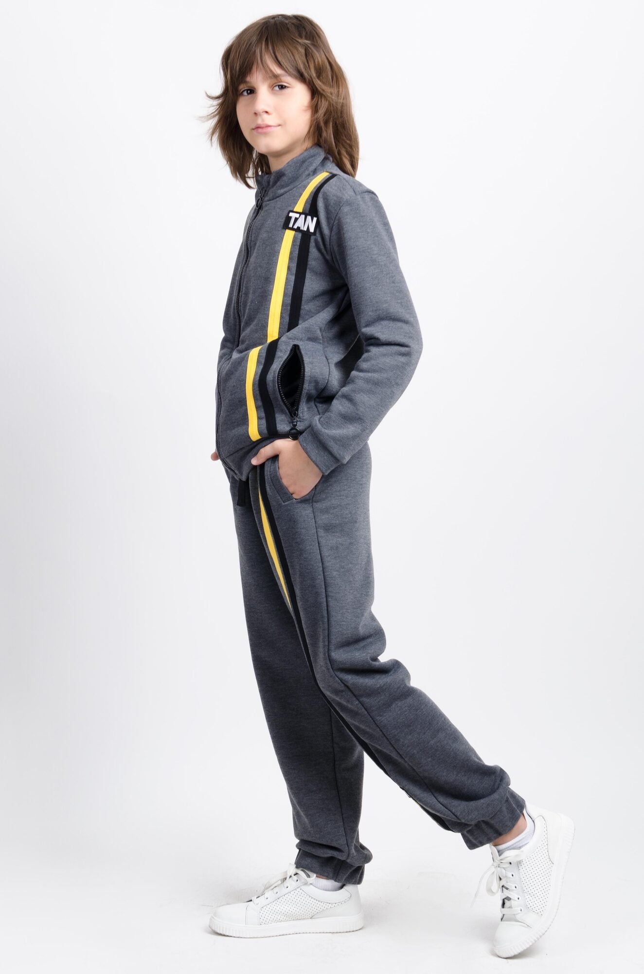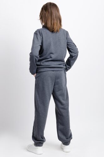 Comfortable gray sweatpants. The legs are fixed at the bottom with elastic bands.